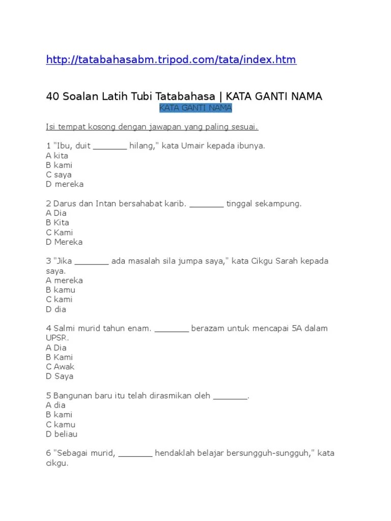 Latihan ( 5 ) kata ganti nama diri nama :( tahun dua. Azman tidak ke sekolah pada hari ini kerana ______ demam . Kata ganti nama diri (tahun 2) latihan pengukuhan. _____ telah berkhidmat di sekolah itu selama hampir tujuh tahun. Lembaran kerja kata ganti nama tahun 2 yang mudah untuk di muat turun dan sedia digunakan di dalam bilik darjah atau di rumah sebagai latihan pengukuhan. Kata ganti nama diri 2.